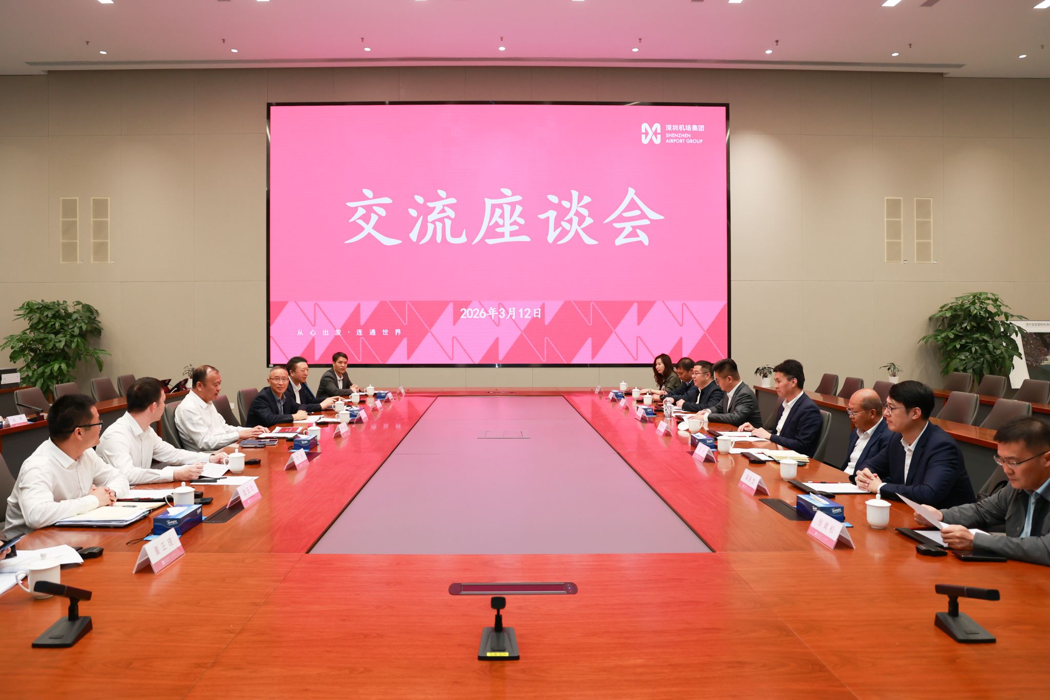 座谈中,双方分别介绍了各自发展战略与合作愿景。深圳机场集团正全力实施“客、货、城、人、智”五大发展战略,致力建设高品质国际航空枢纽和空港型国家物流枢纽;深技大坚持“因学术而应用,为应用而学术”,以服务国家战略与产业需求为导向,加快建设高水平应用研究型大学。